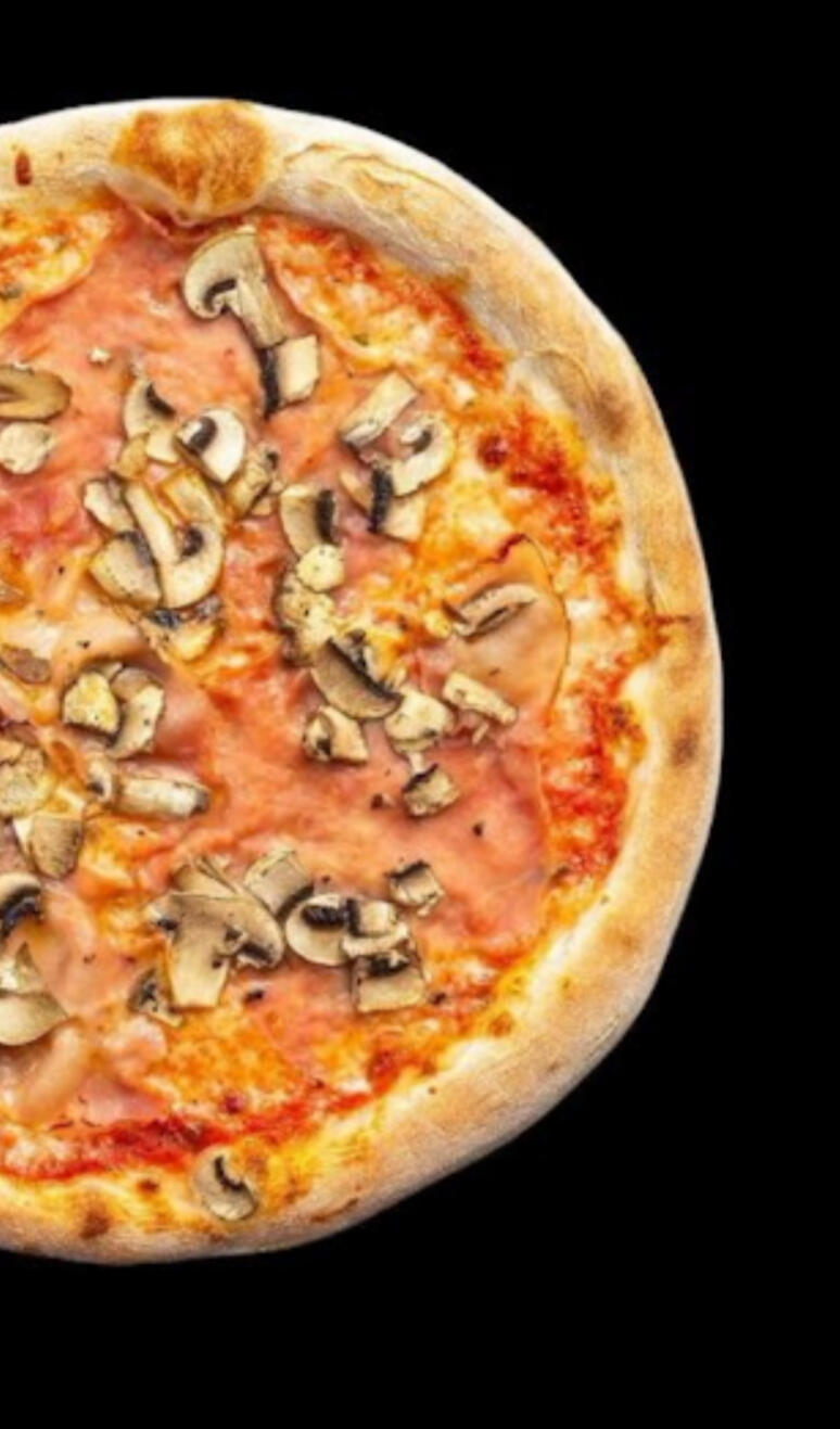 Blat, sos de rosii, mozzarella, prosciutto cotto, ciuperci, usturoi