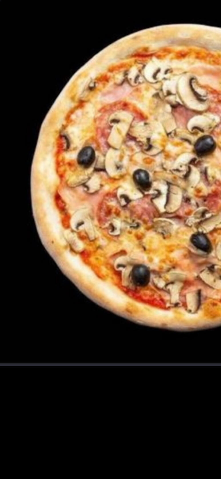 Blat, sos de rosii, mozzarella, salam Milano, prosciutto cotto, ciuperci, masline.