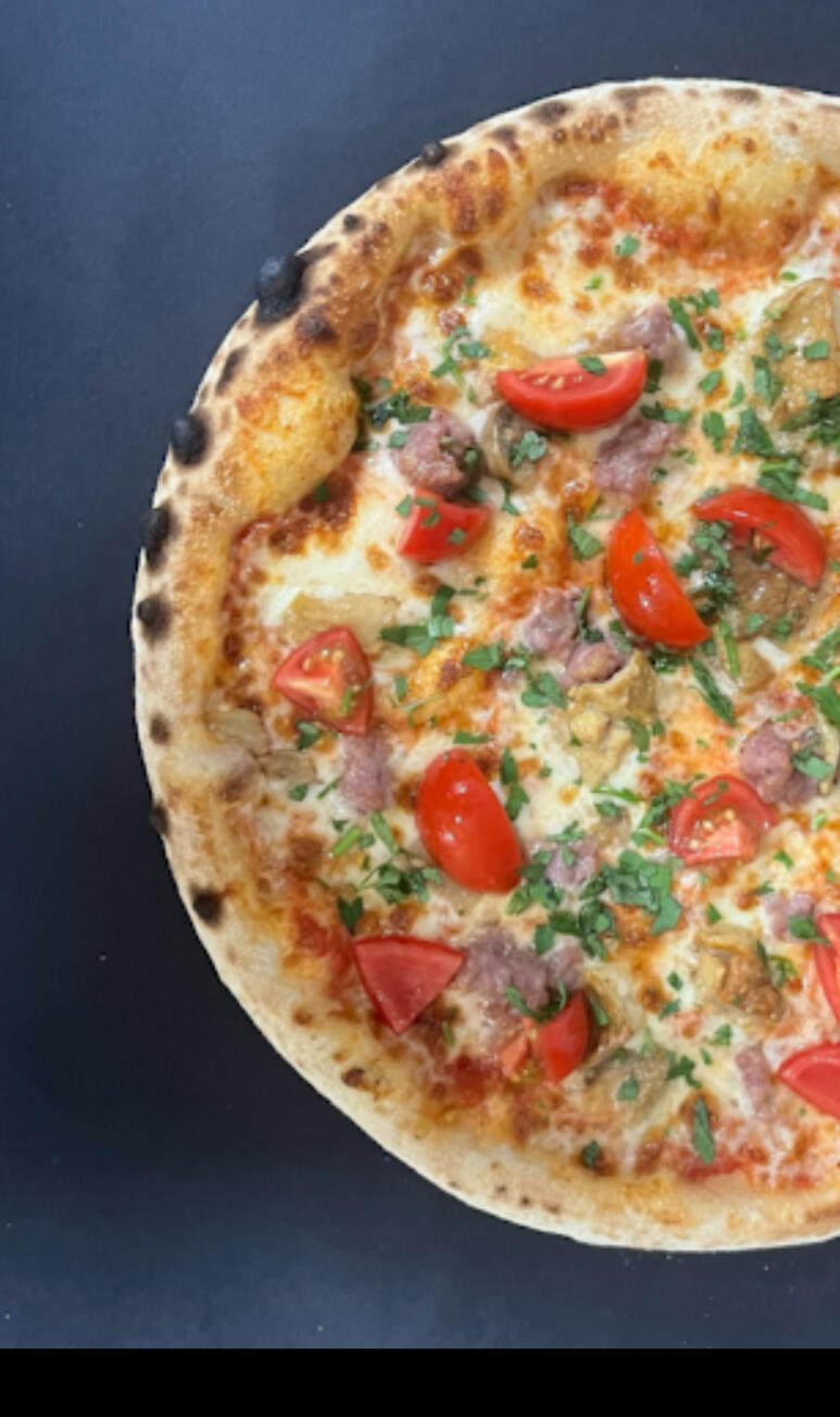 Blat, sos de rosii, mozzarella, carnat italian salsiccia dolce, hribi.