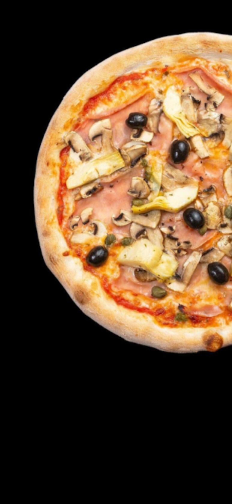 Blat, sos de rosii, mozzarella, prosciutto cotto, ciuperci, anghinare, masline, capere